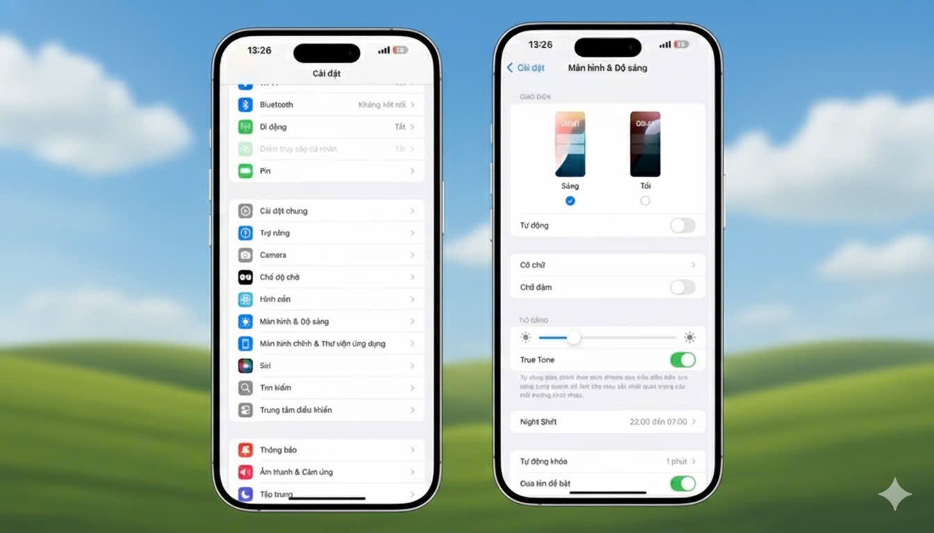 Tính năng Độ sáng tự động giúp iPhone tự điều chỉnh độ sáng màn hình dựa trên điều kiện ánh sáng xung quanh, đảm bảo mức hiển thị luôn phù hợp và dễ chịu cho thị giác.