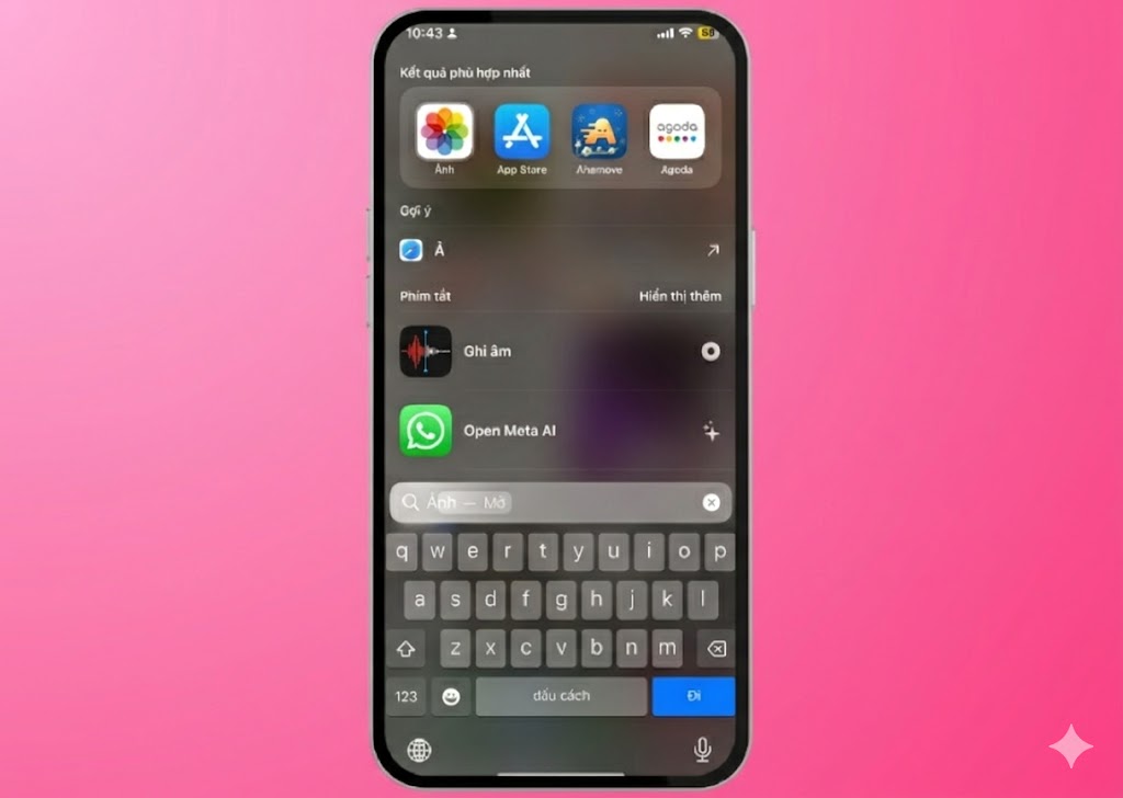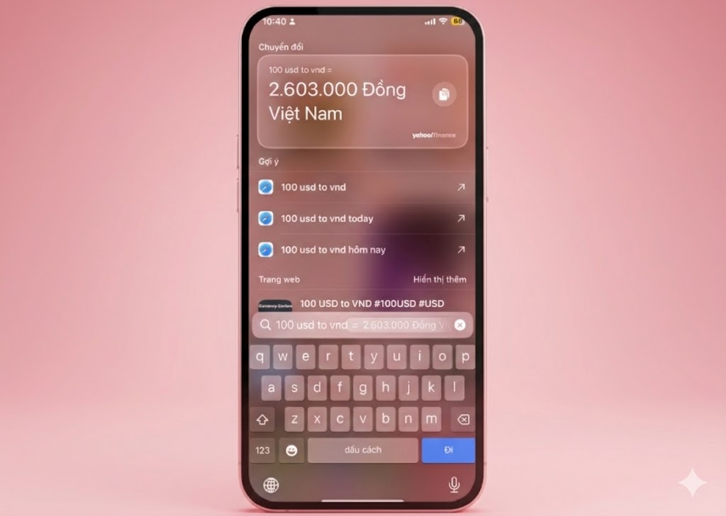 Chỉ với vài ký tự nhập vào thanh tìm kiếm, bạn có thể thực hiện nhiều tác vụ quan trọng mà không cần mở ứng dụng riêng lẻ – một lợi thế nhỏ nhưng mang lại hiệu quả lớn trong trải nghiệm sử dụng iPhone.