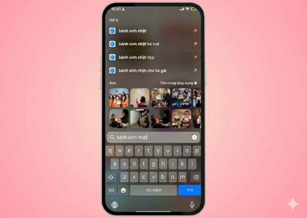 Chỉ cần nhập từ khóa như “biển”, “bánh sinh nhật” hoặc “chó”, hệ thống sẽ hiển thị các hình ảnh liên quan. Người dùng cũng có thể tìm theo:
