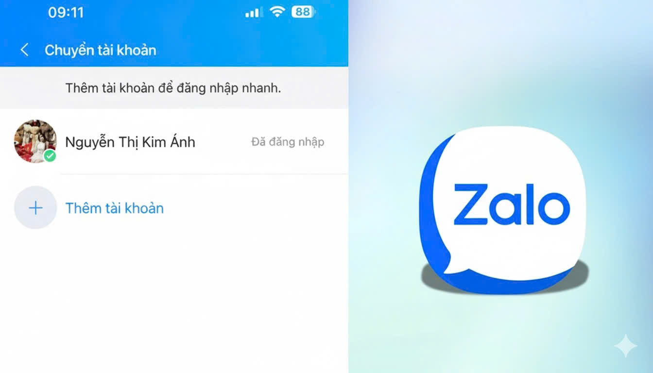 Sau khi thiết lập xong, bạn chỉ cần quay lại mục Chuyển tài khoản là có thể đổi qua lại giữa Zalo A và Zalo B chỉ bằng một cú chạm, nhanh hơn gấp nhiều lần so với việc đăng xuất thủ công.