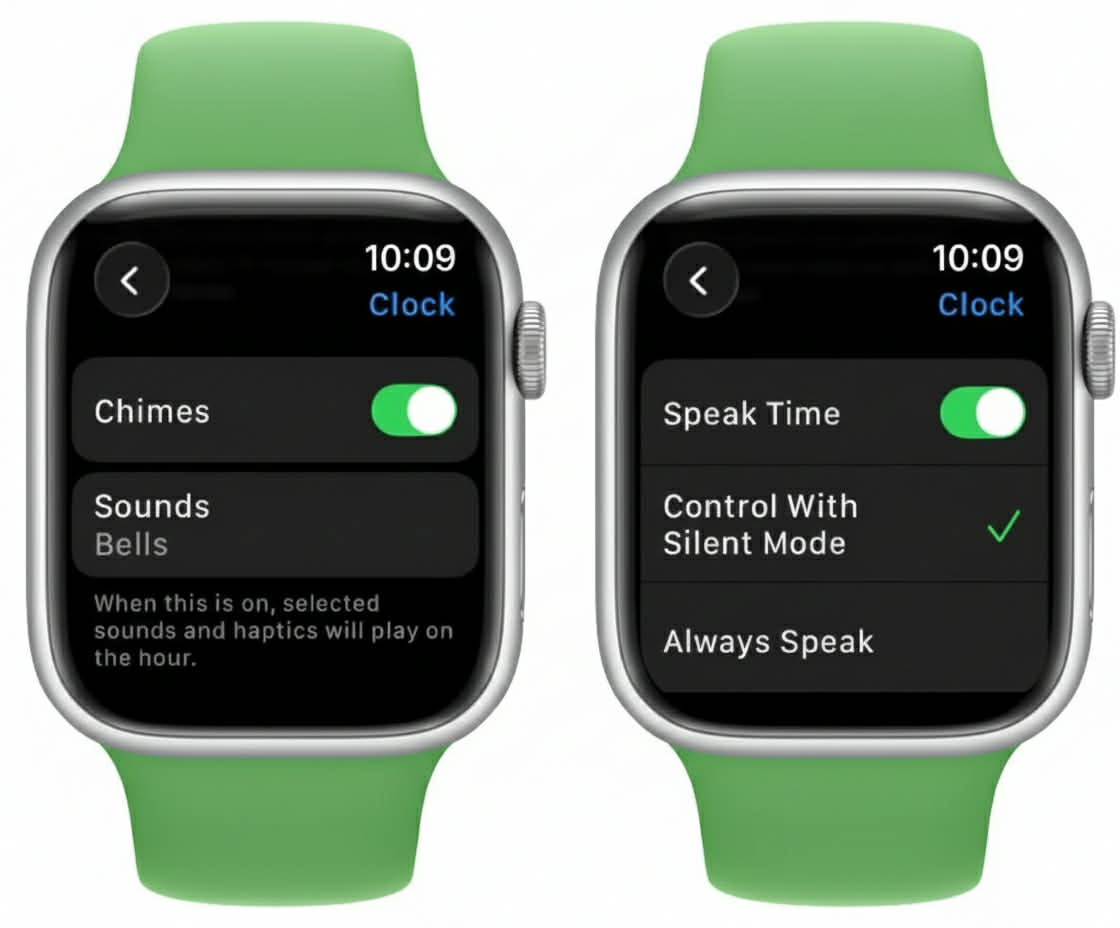 Khi bật tính năng này trong Cài đặt > Đồng hồ, Apple Watch sẽ tạo một cú chạm nhẹ mỗi khi đến giờ tròn. Nếu đồng hồ đang ở chế độ im lặng, thiết bị sẽ không phát ra âm thanh mà chỉ rung nhẹ – đủ để nhắc bạn về thời gian mà không gây phiền toái.
