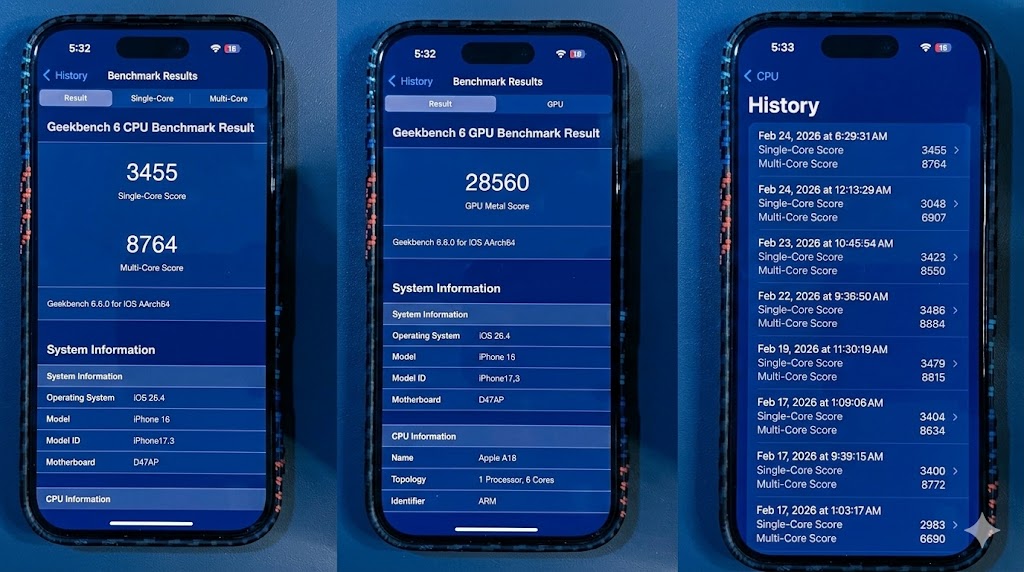 Trong những giờ đầu sau cập nhật, điểm số benchmark có xu hướng thấp hơn bình thường do hệ thống tiến hành tái lập chỉ mục và tối ưu dữ liệu nền. Tuy nhiên, sau khi ổn định, kết quả đo bằng Geekbench ghi nhận:
